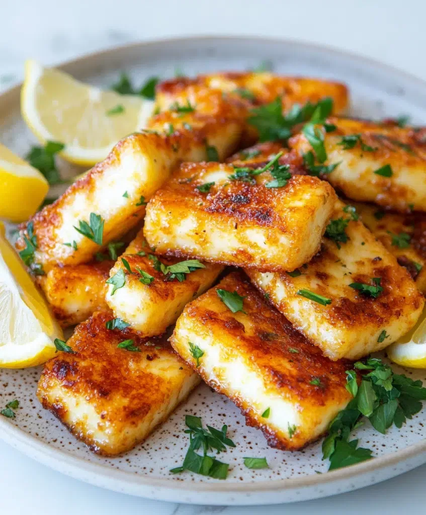 Wenn der Halloumi goldbraun und knusprig ist, herausnehmen und 1–2 Minuten ruhen lassen.