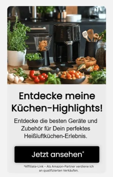 Garen: Stelle die Heißluftfritteuse auf 190°C ein und gare die Kartoffeln für etwa 25 Minuten. Schüttle den Korb nach der Hälfte der Zeit (ca. nach 12-13 Minuten) einmal durch, damit die Kartoffeln von allen Seiten knusprig werden.